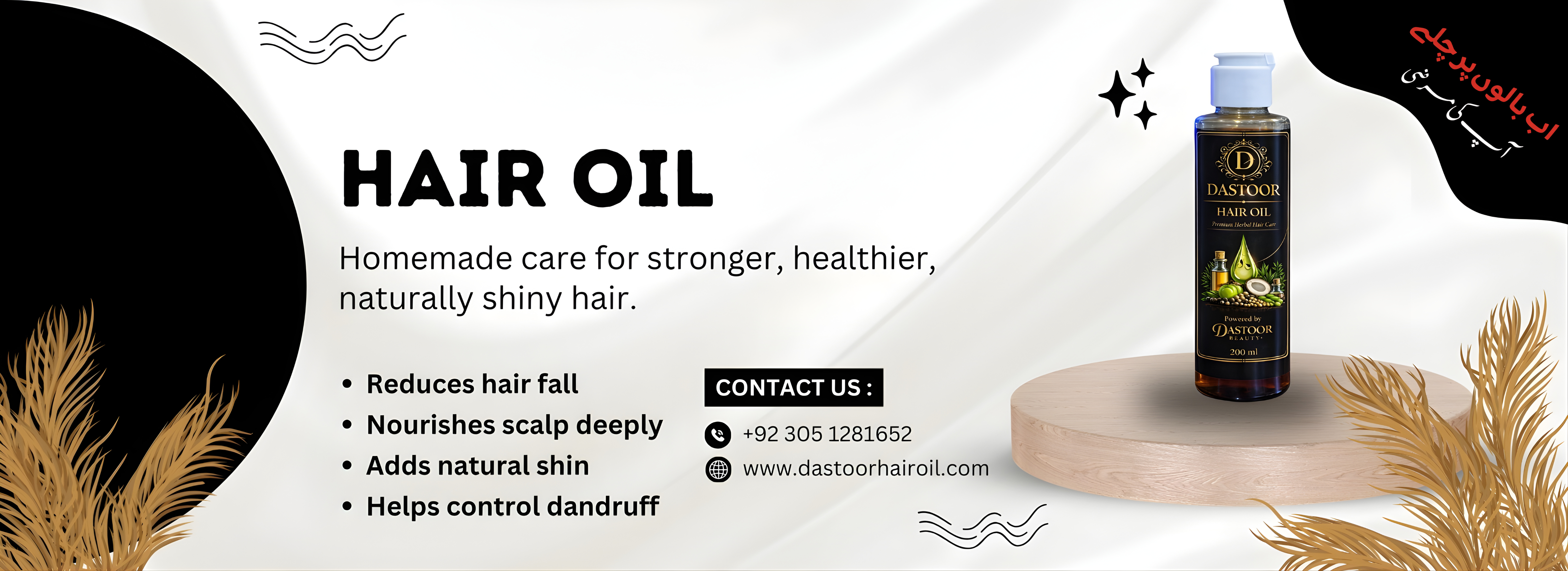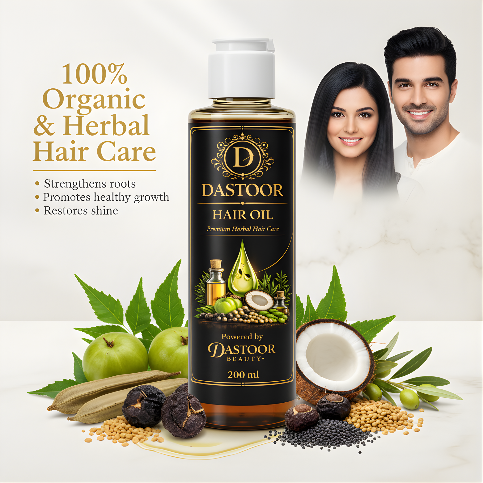 Dastoor Hair Oil is a 100% organic and herbal blend of traditional herbs and natural oils, designed to deeply nourish the scalp, strengthen roots, and promote thicker, healthier hair growth. Free from harmful chemicals, it repairs damage, reduces dryness and frizz, and restores natural shine—suitable for both men and women of all hair types.
